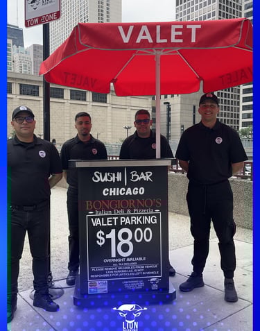 Welcome to Lion Parking, your trusted valet service in Chicago and throughout Illinois . We ensure fast, safe, and reliable parking, providing peace of mind and convenience for all our customers.